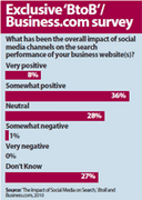 Interesting survey from BtoB and Business.com exploring how B-B marketers are using and measuring social media to impact search results. Long survey short, it is just starting, but look promising. Of the 464 marketers surveyed 57% said improving search results was one of their top goals in using social media. Specific tactics include driving inbound links through posts and expanding profiles and accounts on social networks.