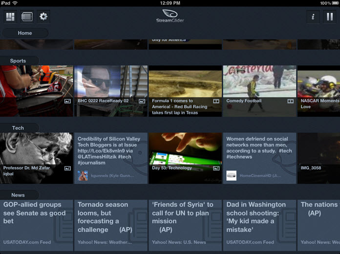 After an off-again/on-again rollout, the StreamGlider app is back on the market. Featuring a free, standard version as well as an ad-free pro version, it’s one of the latest entrants in the pantheon of news-and-social-media aggregators. How does it stack up against other go-to apps, such as Flipboard, Livestand, and Pulse?