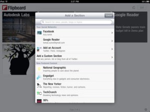 Finally, you can also get content into Flipboard by joining the ranks of those select publishers listed in Flipboard’s featured content section or in the other categories (magazines, news, business, tech & science, cool curators, art & photography, design, living, entertainment, sports, travel, food & dining, and style). Presumably, these publishers – from the Dalai Lama and Oprah to Rolling Stone and Houzz – are Flipboard partners. On its website, Flipboard notes that publishers can design their content for Flipboard. Flipboard Pages, a lightweight JavaScript engine parses content and lays out articles in their template optimized for the iPad. But unless you’re one of Flipboard’s select partners, you can’t use Flipboard Pages quite yet as they are not ““ready for a wider group of publishers to try this out.”