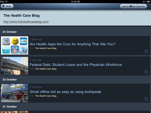 Obviously we are enthusiastic about tablet apps as a marketing channel. Of the top ten free and paid iPad News Apps, six are primarily RSS aggregators. That is amazing given that it is nearly impossible to subscribe to specific content in these apps. Customer typically view your content through syncing with Google RSS Reader, which is not a user friendly experience.