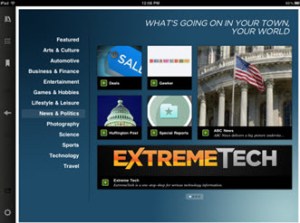 Like Zite, Editions claims to be the magazine that “reads you” – learning what you like so that it can deliver personalized content (which can include content from AOL properties such as Huffington Post and nonaffiliated content). Like the other iPad news magazines, it’s easy to share articles via email, twitter, and Facebook.